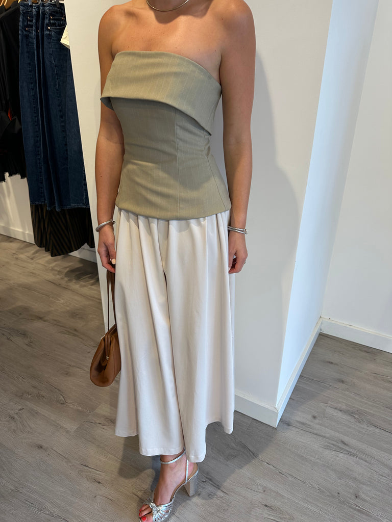 Mixed Media Dress - XS / Taupe is backordered and will ship as soon as it is back in stock.
