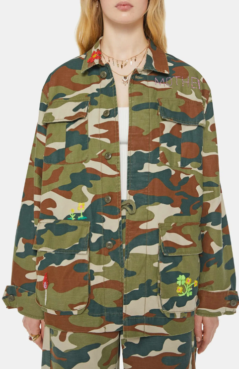 The Foxhole Embroidered Detail Camo Print Cotton Jacket